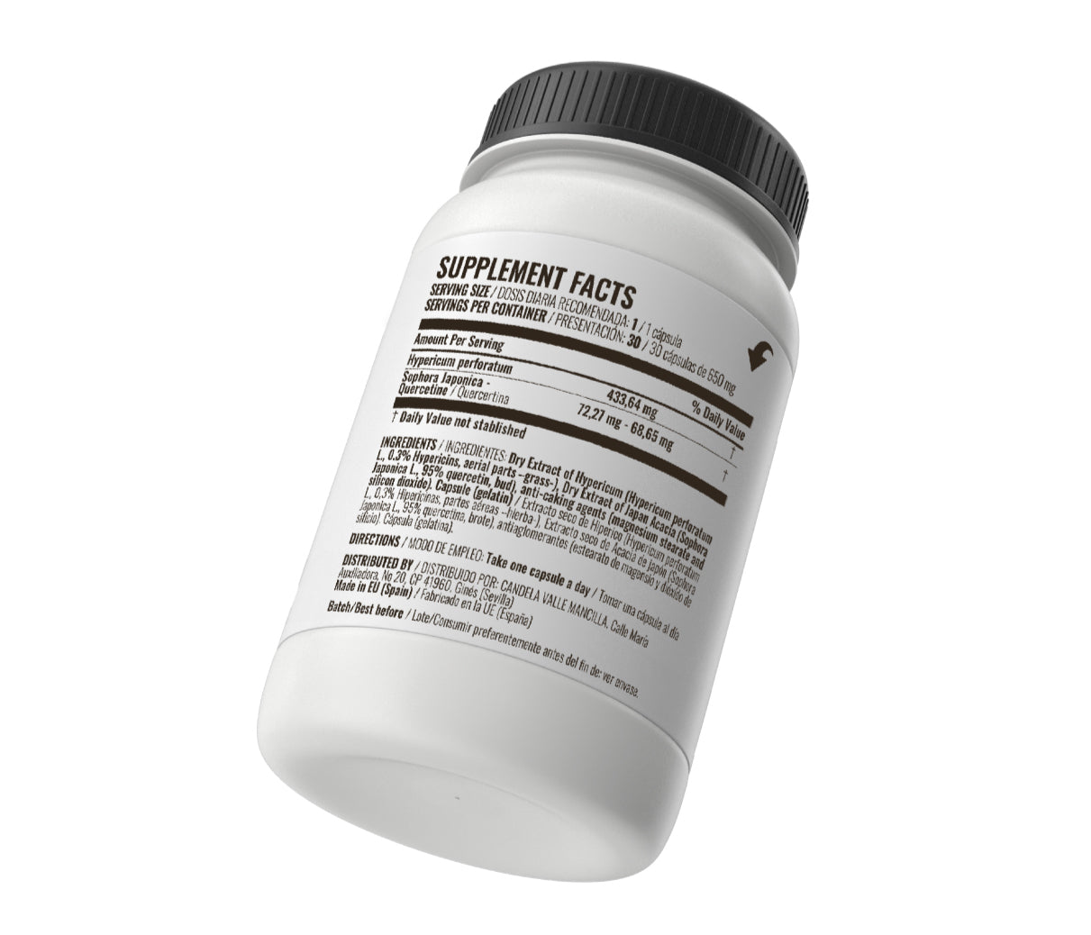 La diferencia entre la hierba de San Juan y la quercetina es que, aunque ambas inhiben la recaptación de serotonina (provocando una ralentización en el proceso de generación de serotonina que permite volver a utilizarla), la quercetina tiene una potente función antioxidante y antiinflamatoria.