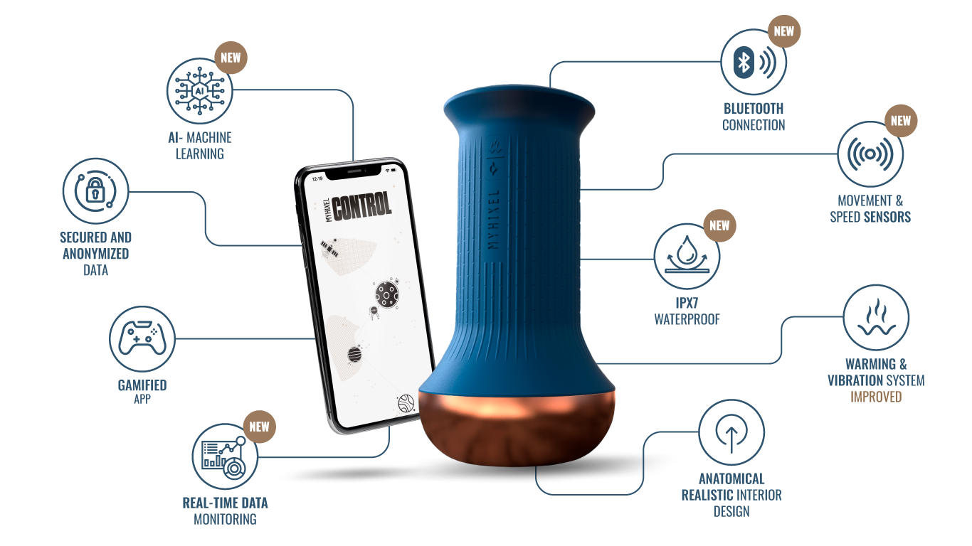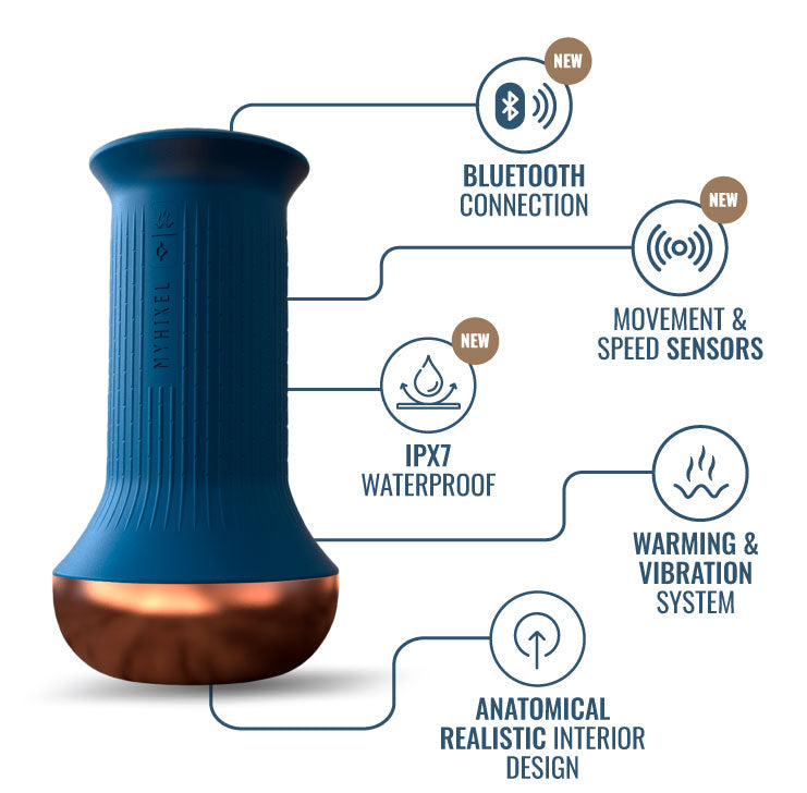 The MYHIXEL II device features a soft and lifelike sleeve with built-in heating and gentle vibrations. Paired with the Play App, it’s the best natural way to understand your body and improve your climax control.