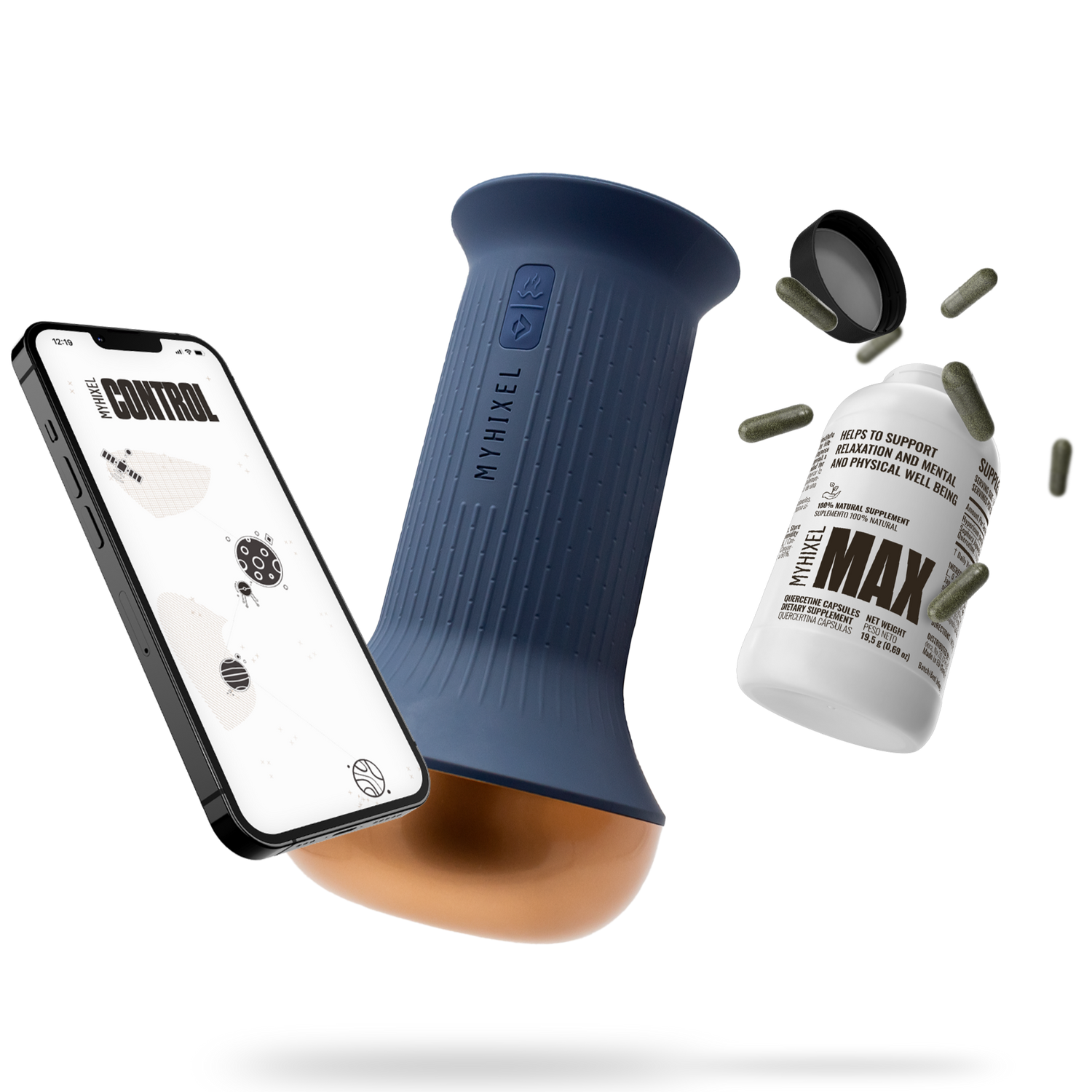MYHIXEL is an innovative approach to ejaculatory control that's grounded in scientific research. The unique combination of a coaching app and lifelike device was successfully tested on over 500 men in a clinical trial prior to it's public launch in 2019. There is no medication, loss of sensitivity or other therapies involved. By using the MYHIXEL method, you will reach a higher level of ejaculatory control in a natural way, while at the same time, increasing your confidence and self-esteem.